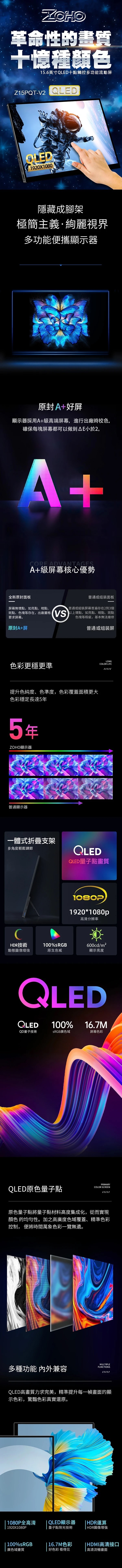 ZOHO 15.6吋便攜式顯示器(QLED版/觸控) Z15PQT-V2